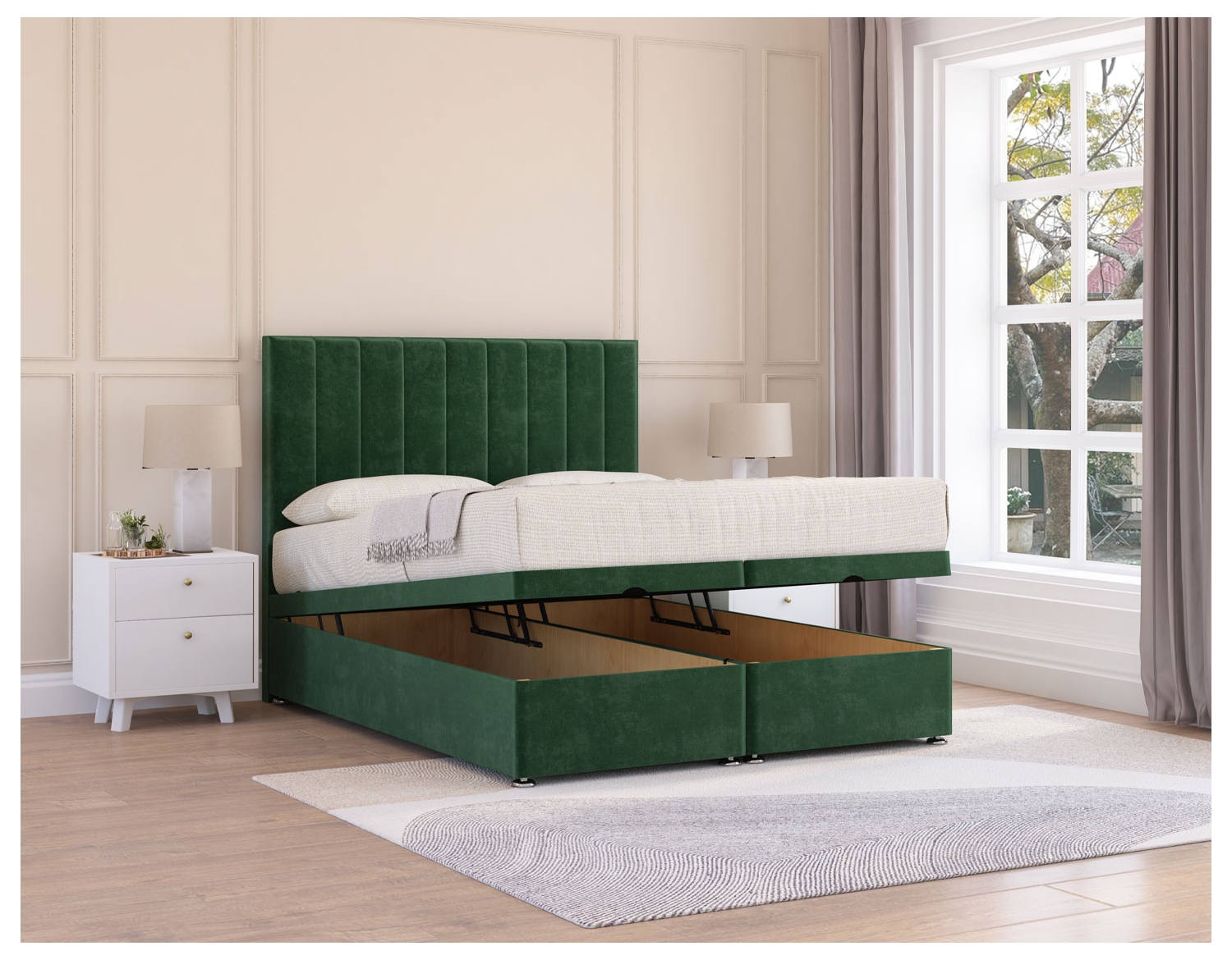The under bed storage space is ideal for storing bedding, clothes, linen, and towels, as well as being perfect for hiding gifts and presents. Our ottoman bases fit seamlessly back onto the body of the bed, so don’t affect the design or style of our beds.